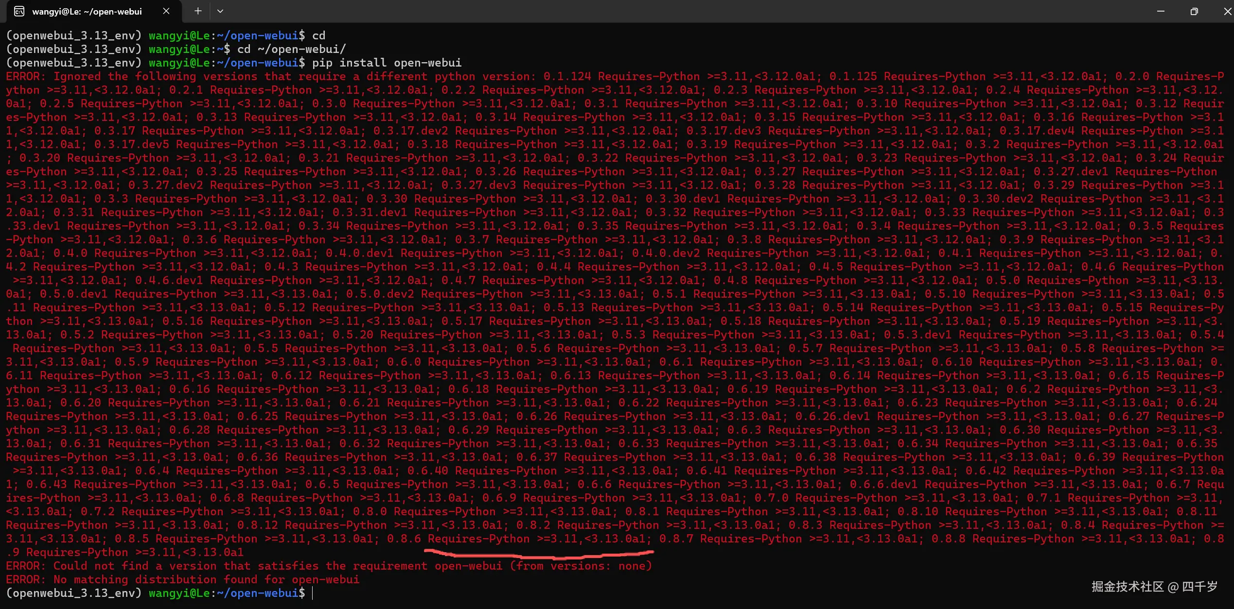 因此,我们需要额外安装一个版本满足 3.11 ≤ 版本 < 3.13 的 Python,并在Python内置的venv隔离环境中运行我们安装的Python版本。注意:open-webui只支持在 Python3.11 和 Python3.12 版本上面安装,不支持 Python3.13 版本。