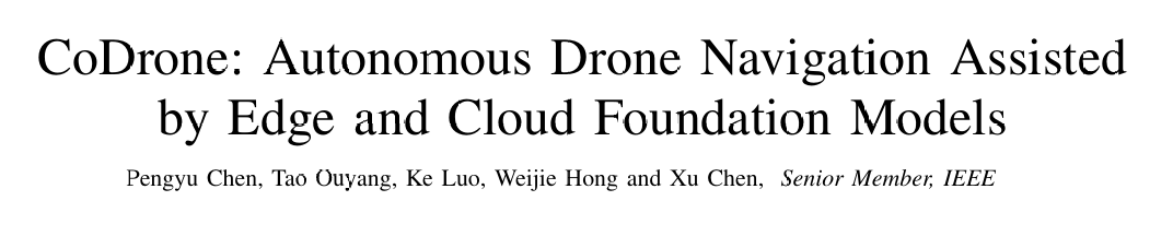 **标题:**CoDrone: Autonomous Drone Navigation Assisted by Edge and Cloud Foundation Models