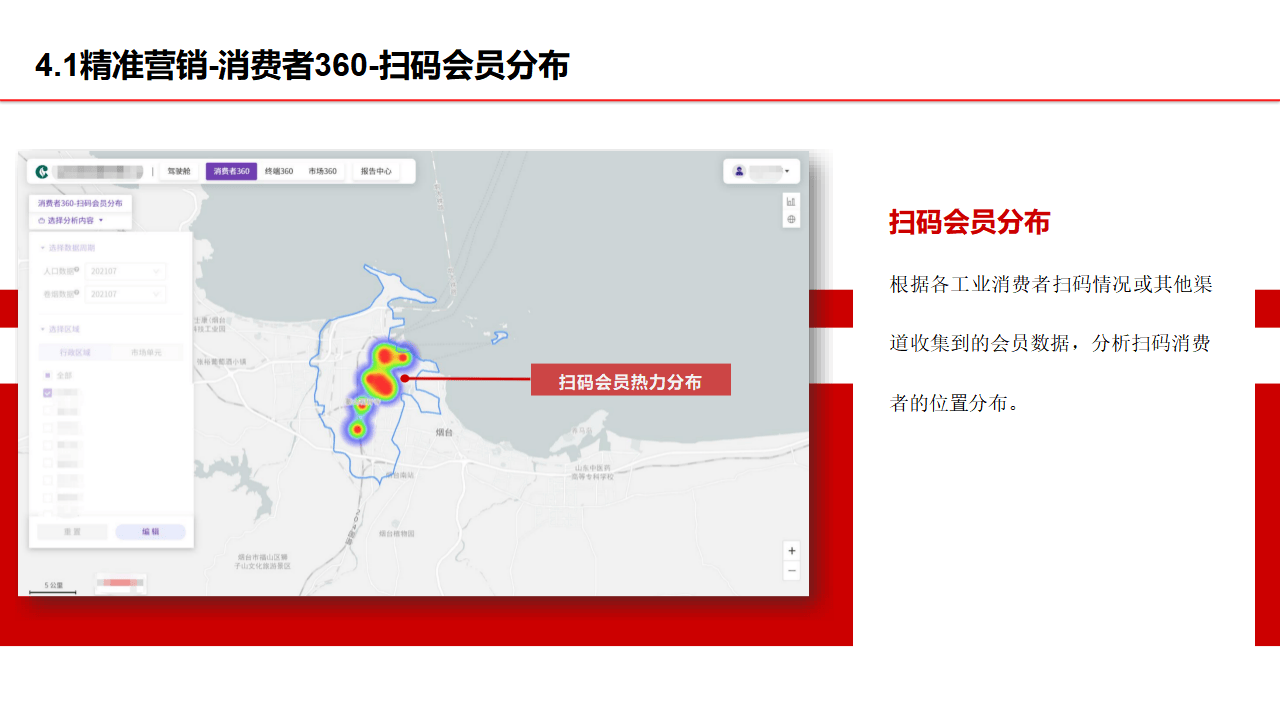 - 热力地图分析: 在地图上叠加人口热力、消费热力与现有零售户分布,识别出"高潜销区"与"市场空白点"。