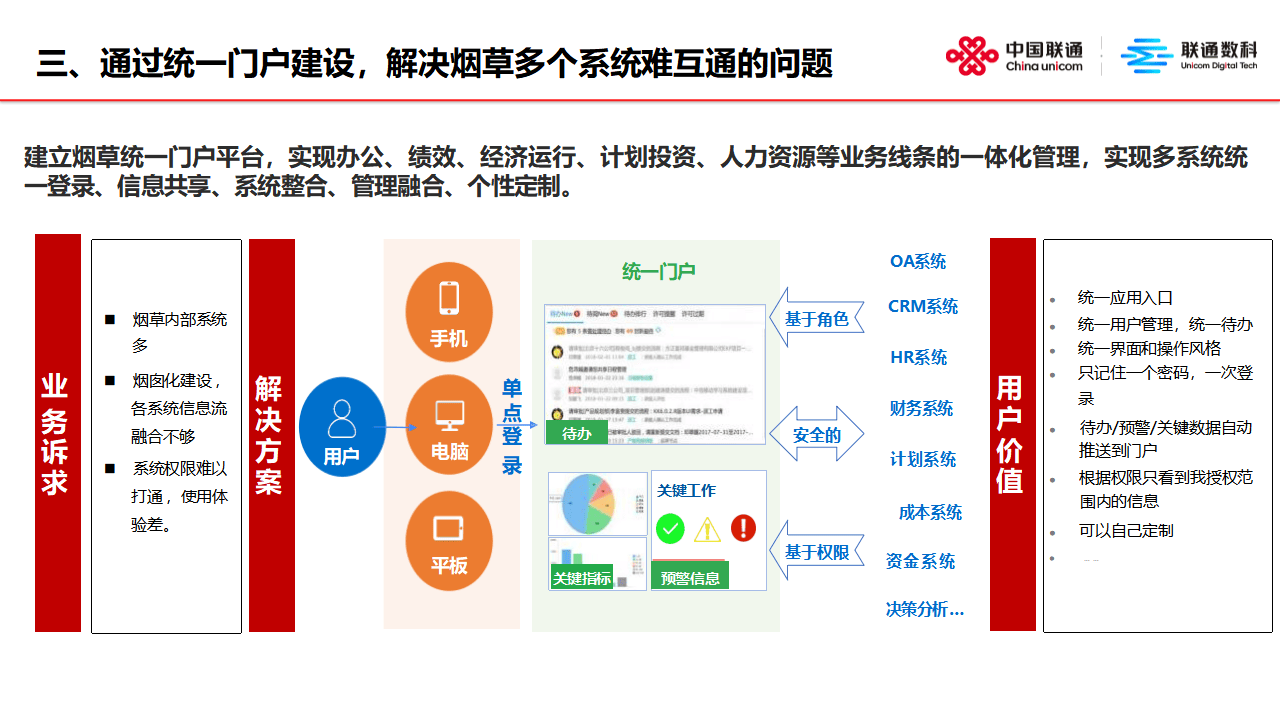 为了解决传统烟草企业中普遍存在的"信息孤岛"、"业务断点"和"数据堵点"问题,该方案构建了全新的技术底座与应用架构。