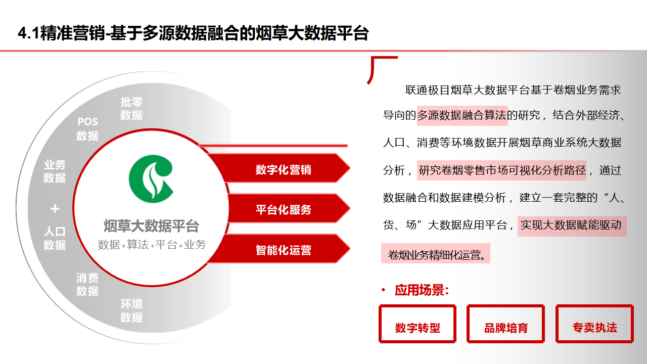 - N大应用场景: 涵盖智慧营销、专卖监管、智慧物流、智慧党建、智慧园区等全业务领域。