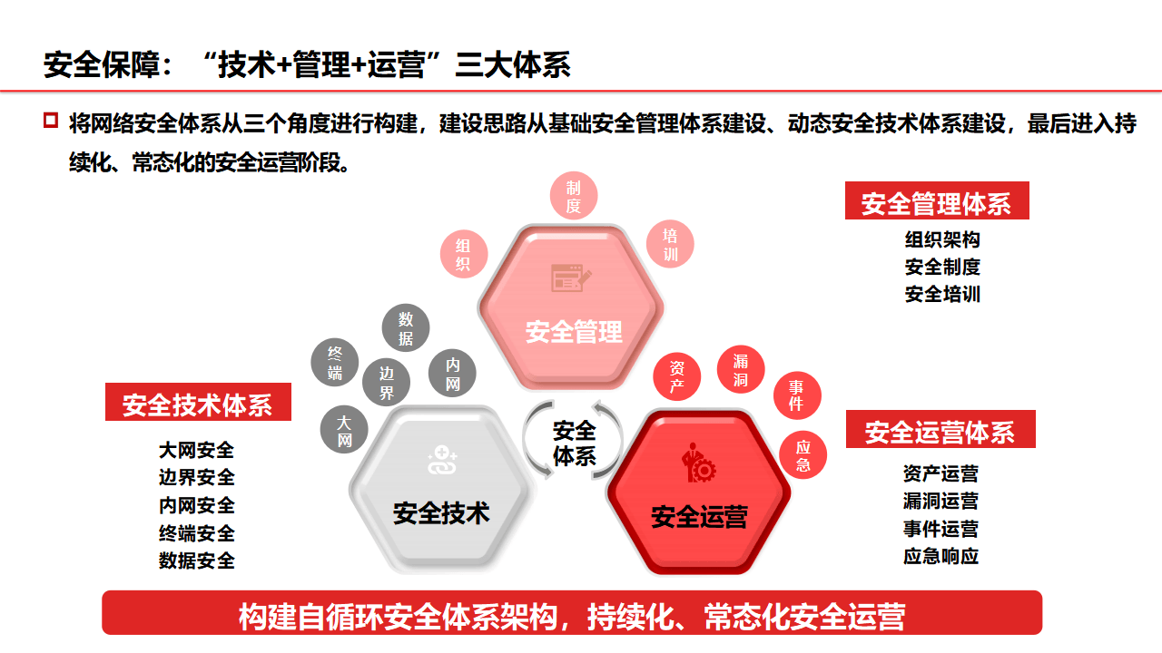 方案构建了"制度+技术+运营"三位一体的安全架构: