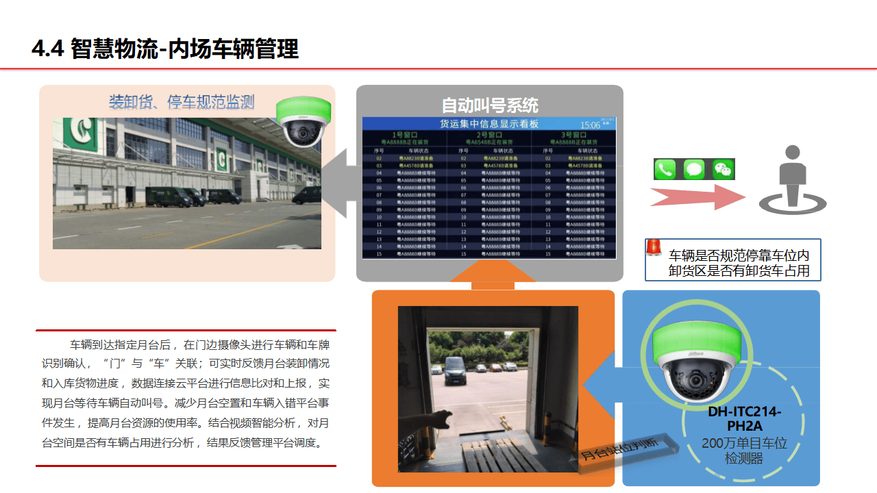 - 智能月台调度: 通过车牌识别和自动叫号系统,优化车辆进出库排队秩序,减少月台空置和拥堵。