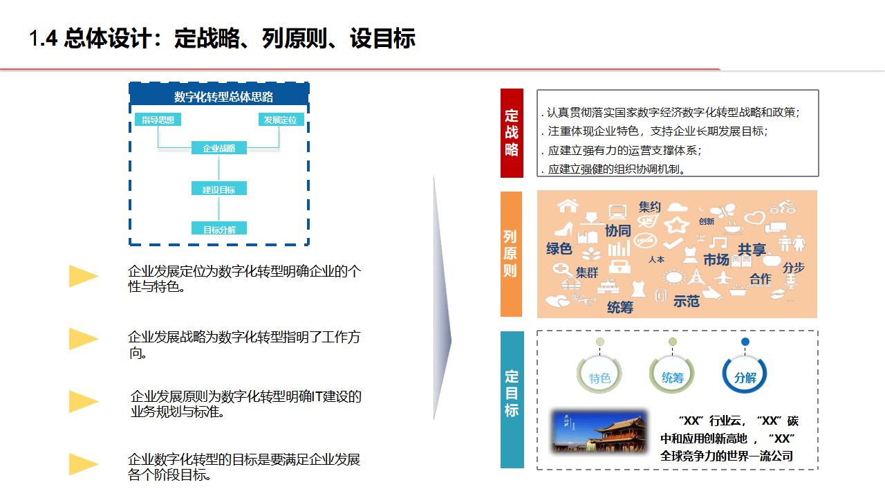 - 总体设计: 确立"集约、协同、创新、绿色、共享"的建设原则,制定符合企业特色的战略目标(如建设"数字湘烟")。