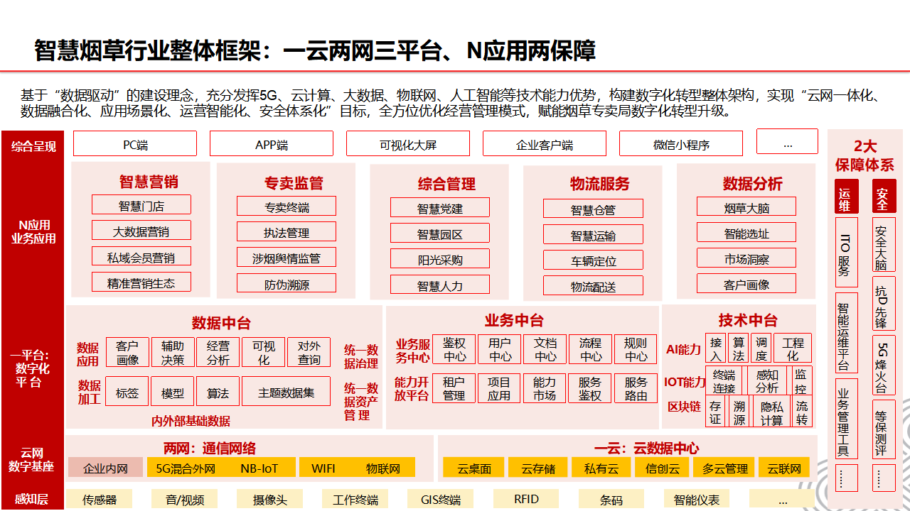这是智慧烟草的"大脑"与"心脏",旨在打破数据孤岛,实现能力复用。