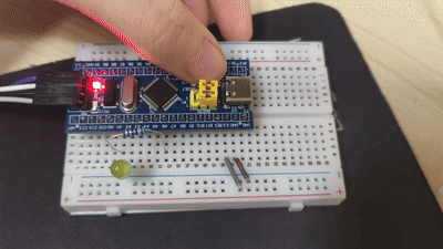 代码说明:定时器的自动重装载值 ARR 设置为 999,因此 dutyCycle 取值范围为 0 到 999,对应占空比 0% 到 100%。这里设置 dutyCycle 范围为 10 到 990,保留一定的亮暗余量,避免 LED 完全熄灭或过亮。