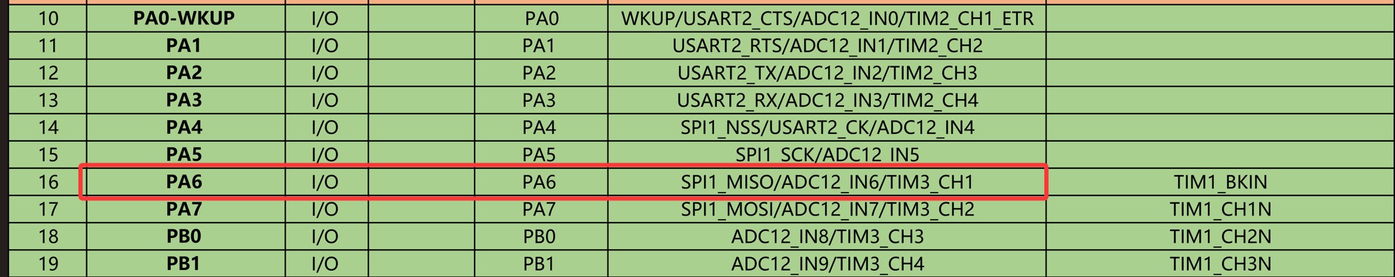 本次我们使用引脚PA6演示