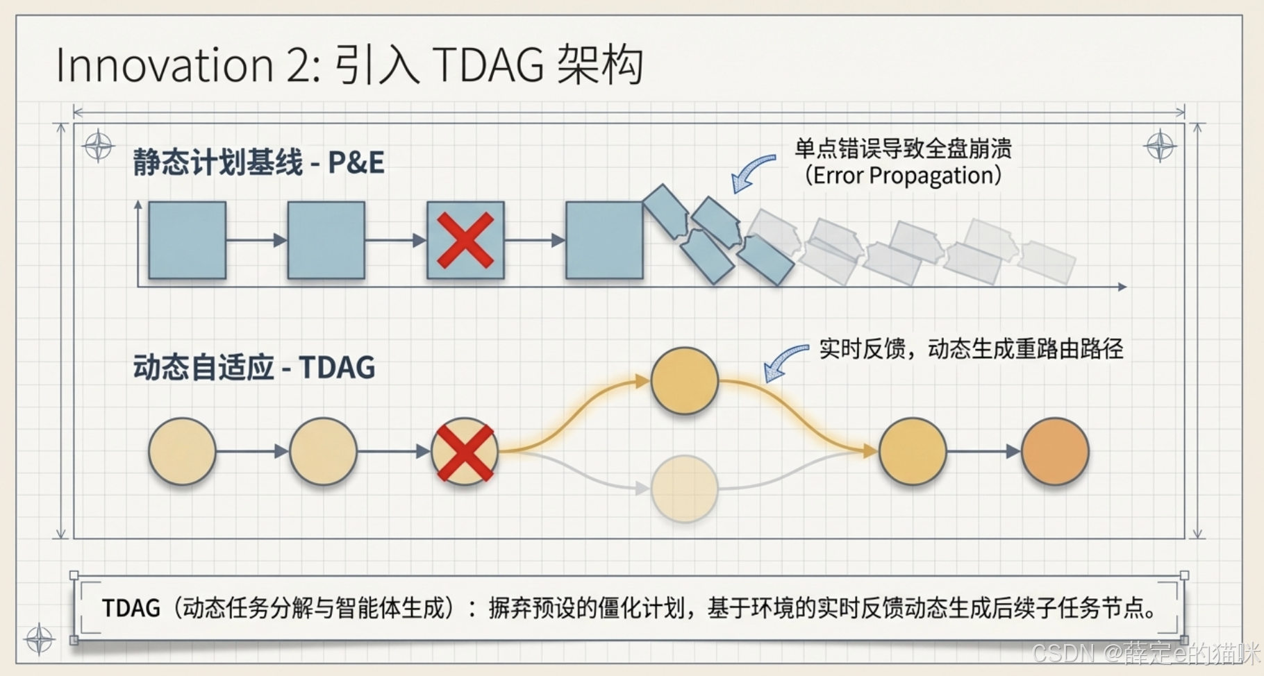 TDAG 的关键不在于"把任务拆开",而在于"在执行过程中动态调整任务结构,并为当前子任务生成更合适的代理"。