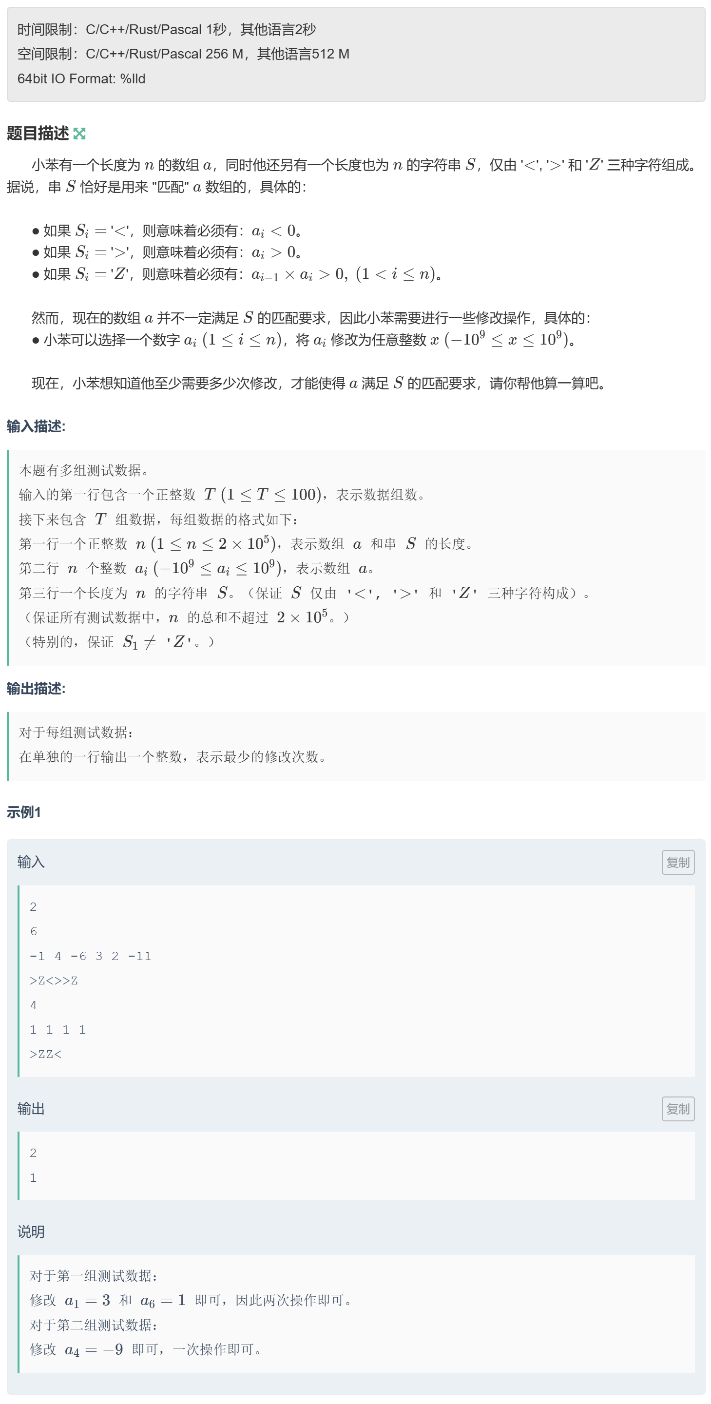 小蓝有两个长度均为 n n n 的数列 A = { a 1 , a 2 , ⋯ , a n } A=\{a_1, a_2, \cdots, a_n\} A={a1,a2,⋯,an} 和 B = { b 1 , b 2 , ⋯ , b n } B=\{b_1, b_2, \cdots, b_n\} B={b1,b2,⋯,bn},将两个数列作差定义为 C = A − B = { c 1 = a 1 − b 1 , c 2 = a 2 − b 2 , ⋯ , c n = a n − b n } C=A-B=\{c_1=a_1-b_1, c_2=a_2-b_2, \cdots, c_n=a_n-b_n\} C=A−B={c1=a1−b1,c2=a2−b2,⋯,cn=an−bn}。小蓝将对数列 B B B 进行若干次操作,每次操作可以将数列 B B B 中的任意一个数更改为任意一个整数。在进行完所有操作后,小蓝可以按任意顺序将数列 B B B 重排,之后再计算数列 C C C。小蓝想知道,最少操作多少次可以使得数列 C C C 中的所有数都为正整数。