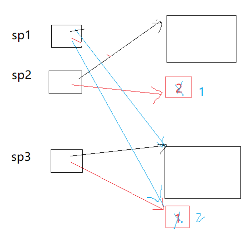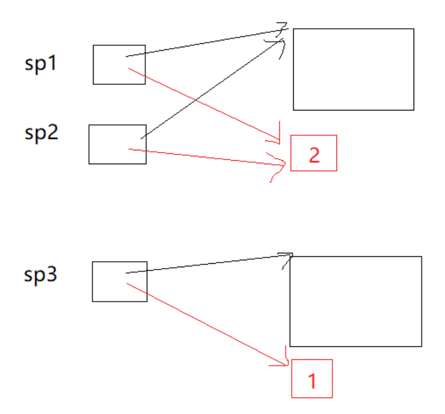 由于sp3管理的资源只有一个引用计数,在sp3拷贝给sp3之前,sp3管理的空间就已经被释放了。