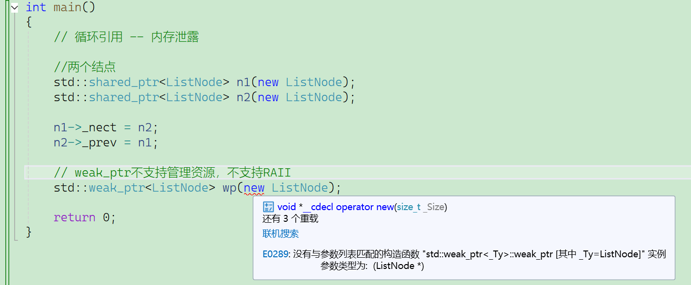 必须造一个weak_ptr,这里只简单实现,不加引用计数,不考虑过期。