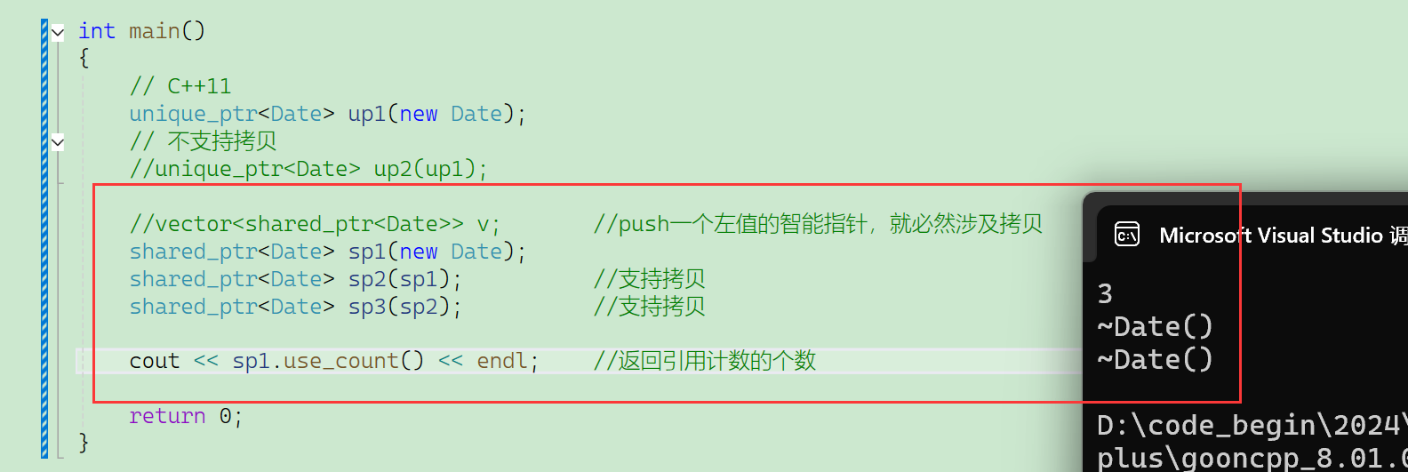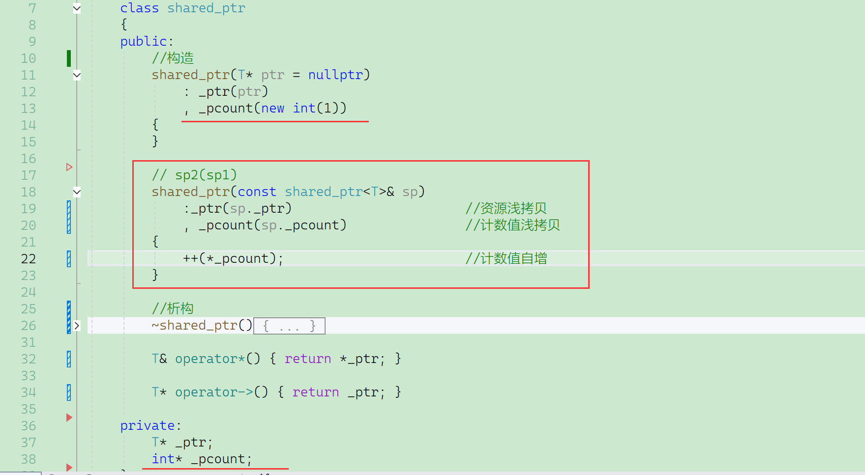 这里的拷贝构造走的还是浅拷贝,只是增加了控制计数值的操作。