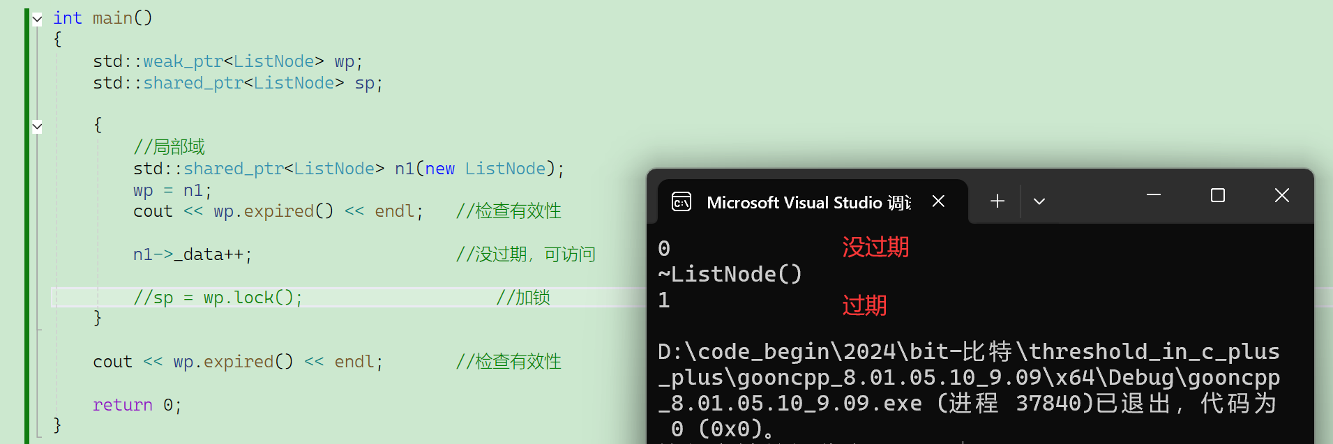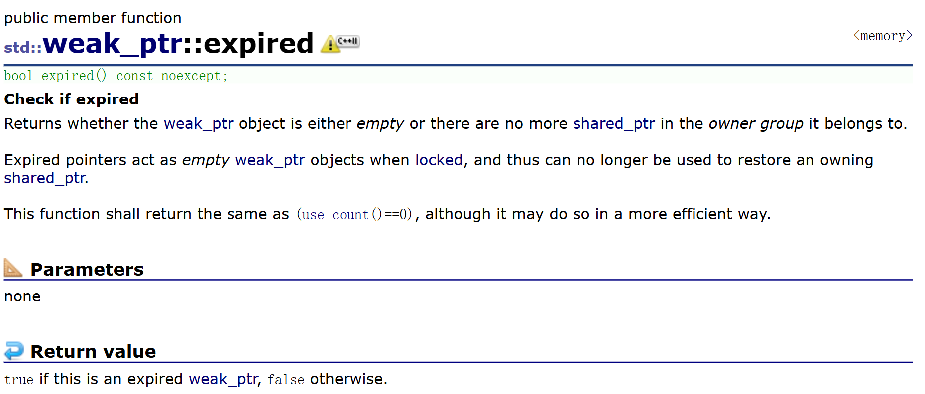 expired成员函数能判断这块空间是否有效------获取引用计数值来判断。