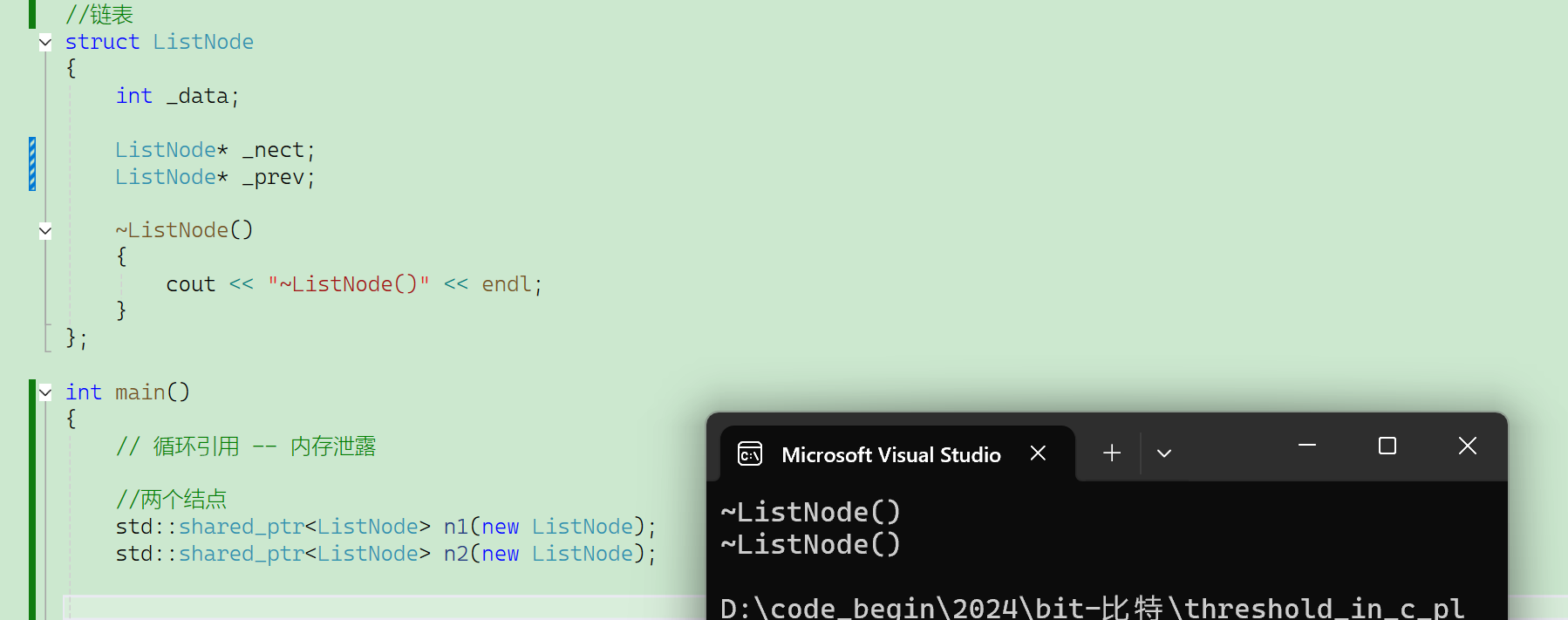 new的两个结点没有释放,程序就结束了------内存泄露。