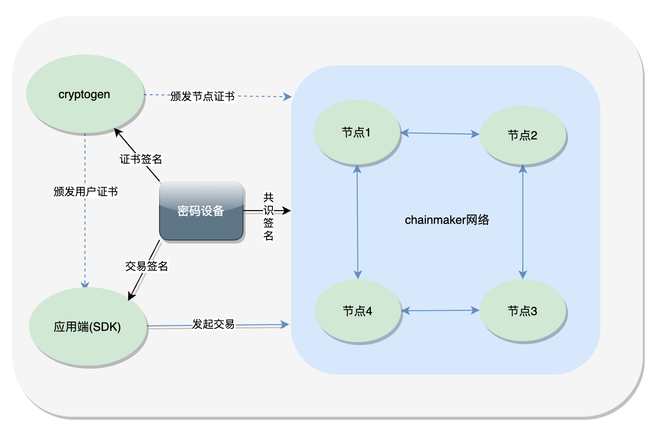 - 节点使用一台或多台密码设别(根据组织结构和节点部署情况而定)