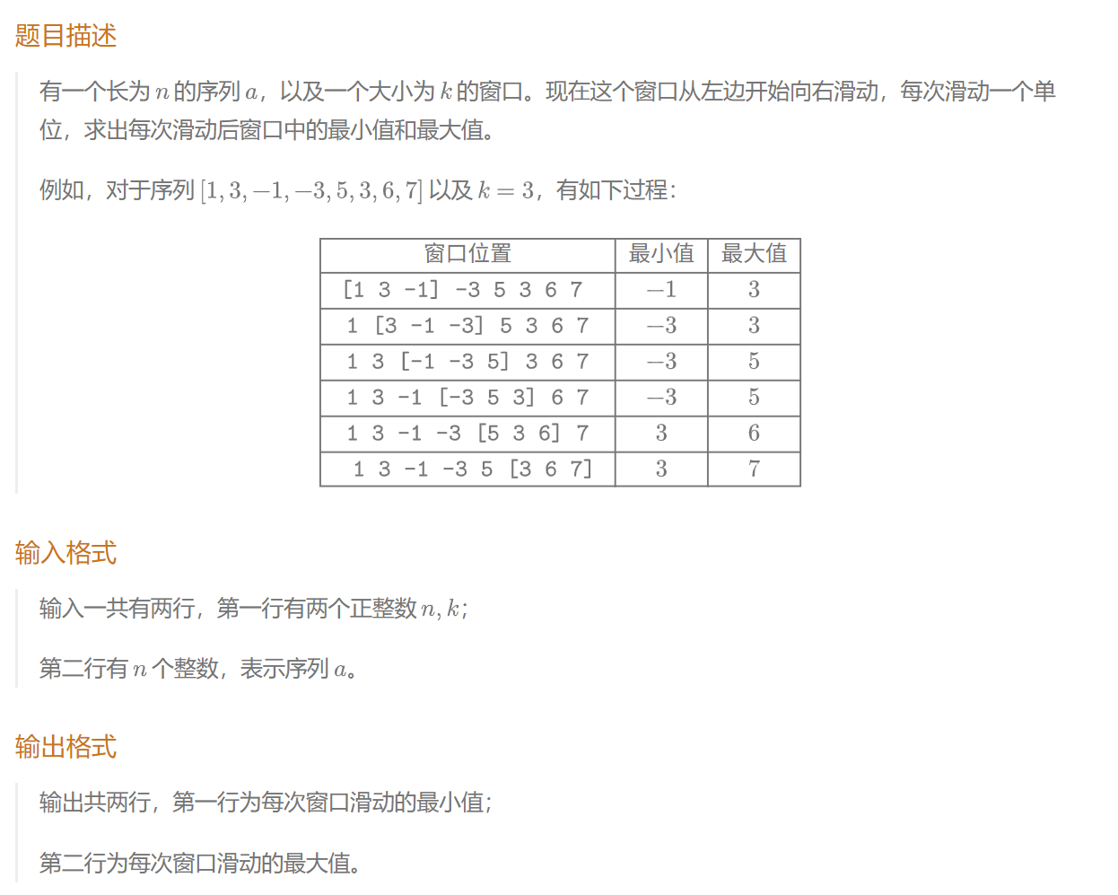 luogu-P1886 【模板】单调队列 / 滑动窗口