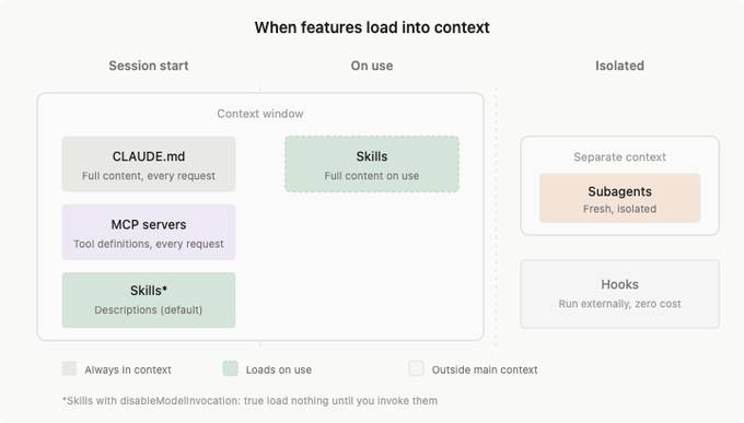 隔离加载 → Subagents:大量探索 / 并行研究