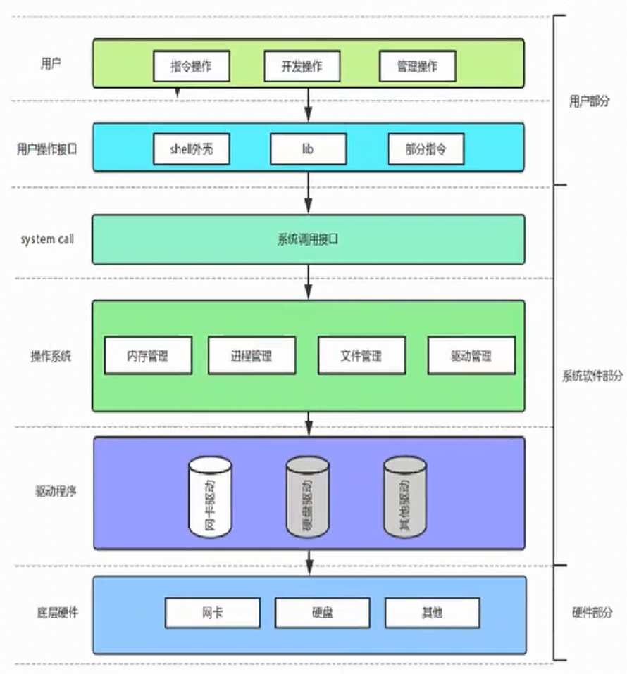 我们首先要记住一句话:操作系统就是一个进行软硬件资源管理的软件。用下面这幅图做进一步解释: