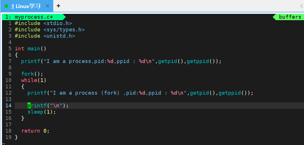 我们会发现,我们源代码中明明只写了两个printf的语句,但是打印出来确是三个语句,并且前两个语句的PID和PPID都相同,第三句语句的PID和PPID和前两个语句的都不相同,并且它的PPID是前两个语句的PID。