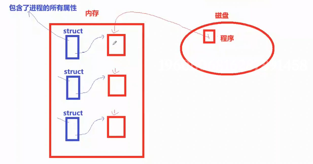 程序的代码和数据:是磁盘上可执行文件加载到内存里的指令、变量、常量等,是进程真正要执行和处理的内容。即下图中内存里的可执行程序。