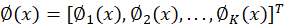 为K个非线性基函数组成的向量,参数