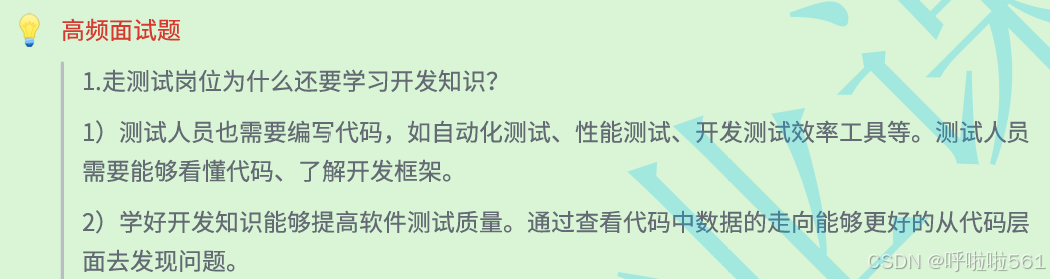 因为测试人员要对开发的业务进行测试,也需要写代码,比如自动化测试,性能测试等等,所以我们要掌握开发的知识和框架。