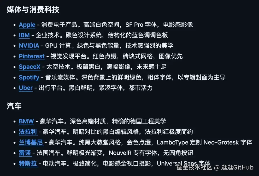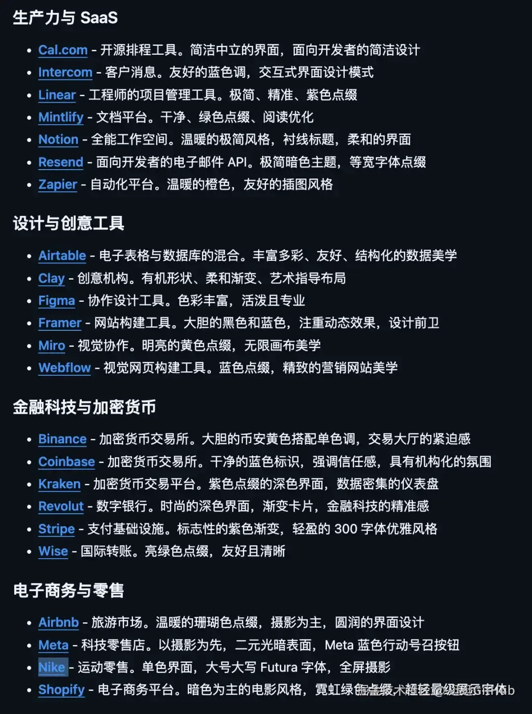 以前你得自己琢磨配色、字体、间距,现在直接拿大牌的设计规范来用,AI 生成的 UI 瞬间就不一样了。