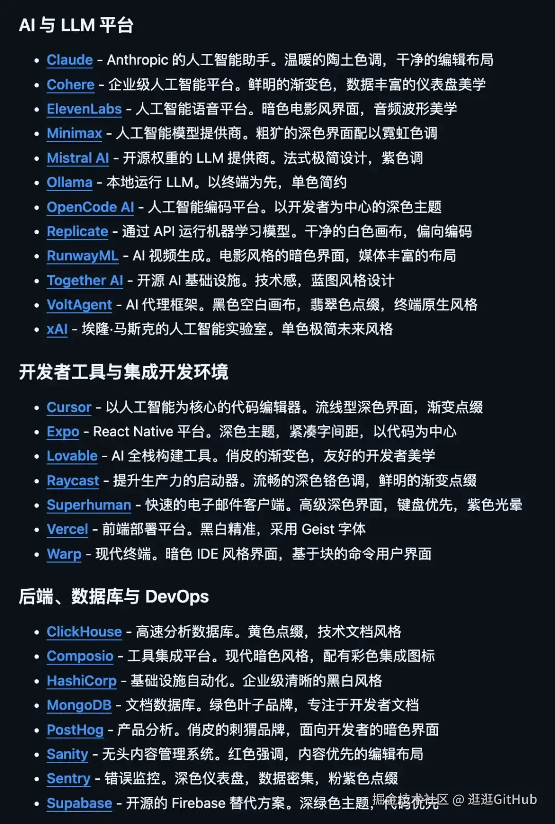 开源地址:https://github.com/VoltAgent/awesome-design-md