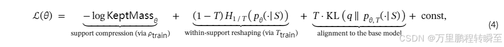 - S是在训练时温度 Ttrain 和截断 ρtrain下,从基础模型采样时存活下来的token集合