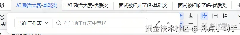 由于获奖用户较多,详细的名单公示如下:AI 整活大赛,正式开擂 &最近一次面试被问麻了获奖名单 如何快速找到自己:进入飞书表格后,使用 Ctr+F 搜索自己的用户名或 用户id,选择"所有工作表"( 用户 id 即掘金主页 juejin.cn/XXXXXX 最后的一串数字)。之前打开过本表同学请刷新表单,奖项或有增补,以最新的表格为准。