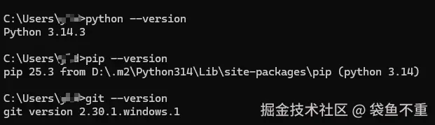 验证依赖安装成功:打开 CMD 或 PowerShell,分别输入以下命令,均能显示版本号即为成功: