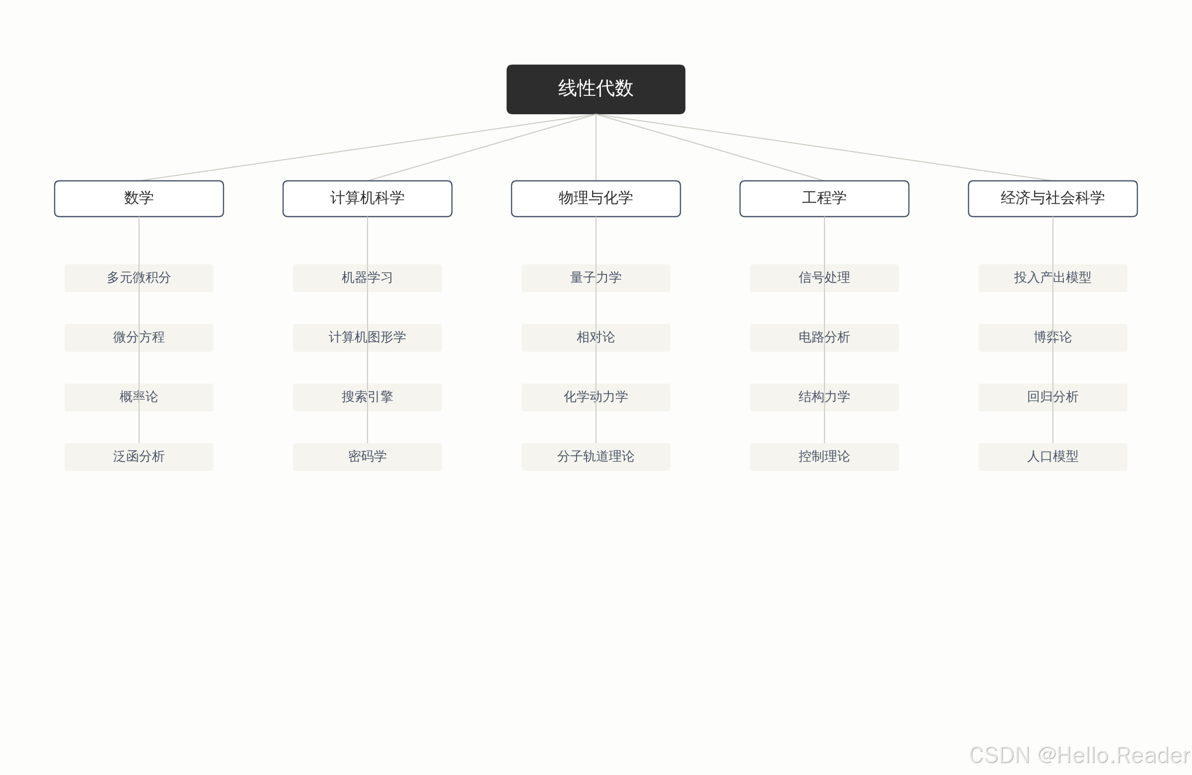 正是因为这个,一门表面上在研究"矩阵和方程组"的课,实际上为后续几乎所有数学分支(微分方程、泛函分析、抽象代数、微分几何、量子力学)打下公共语言。