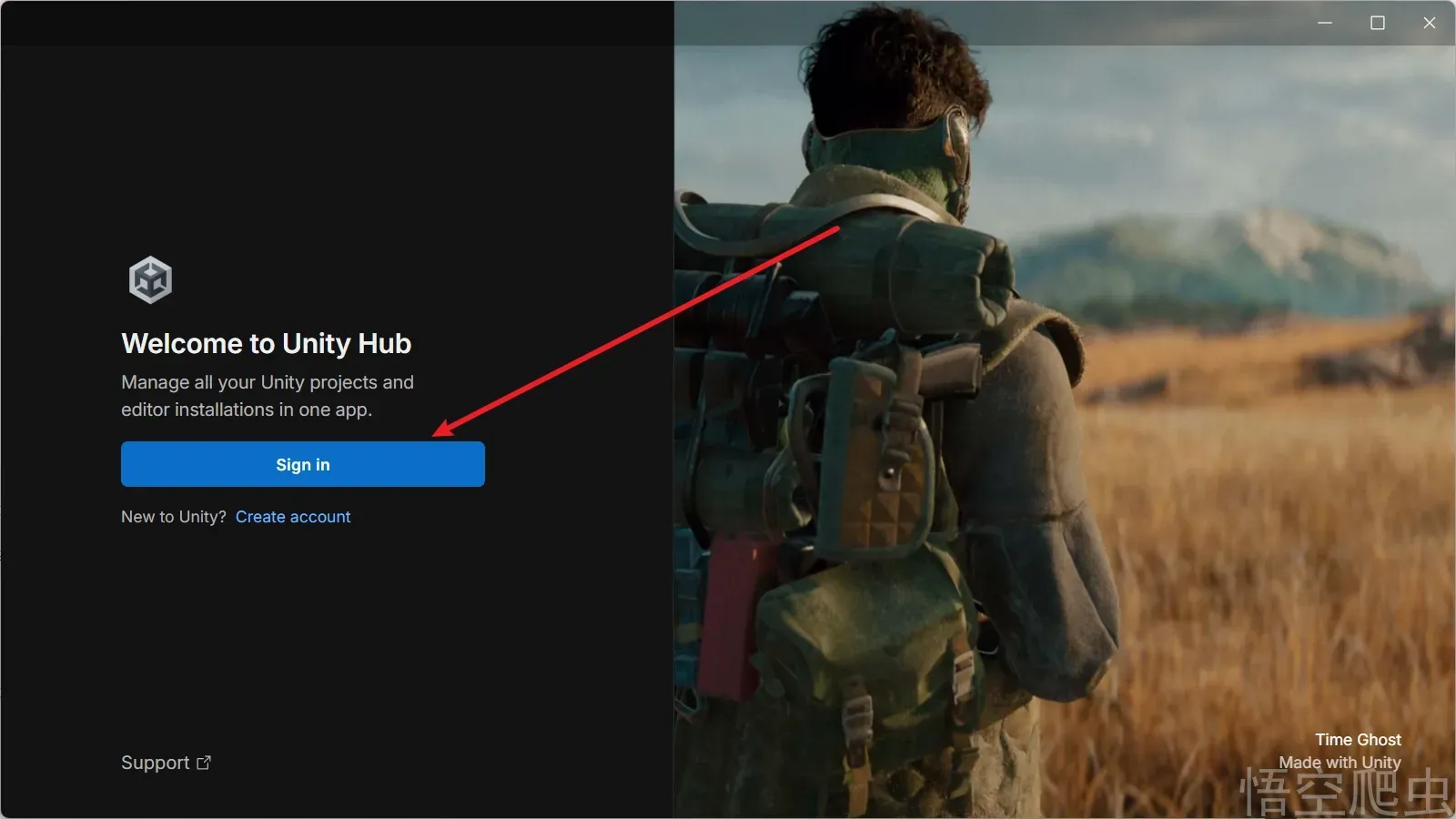 安装完它会自动打开unityhub。登录。