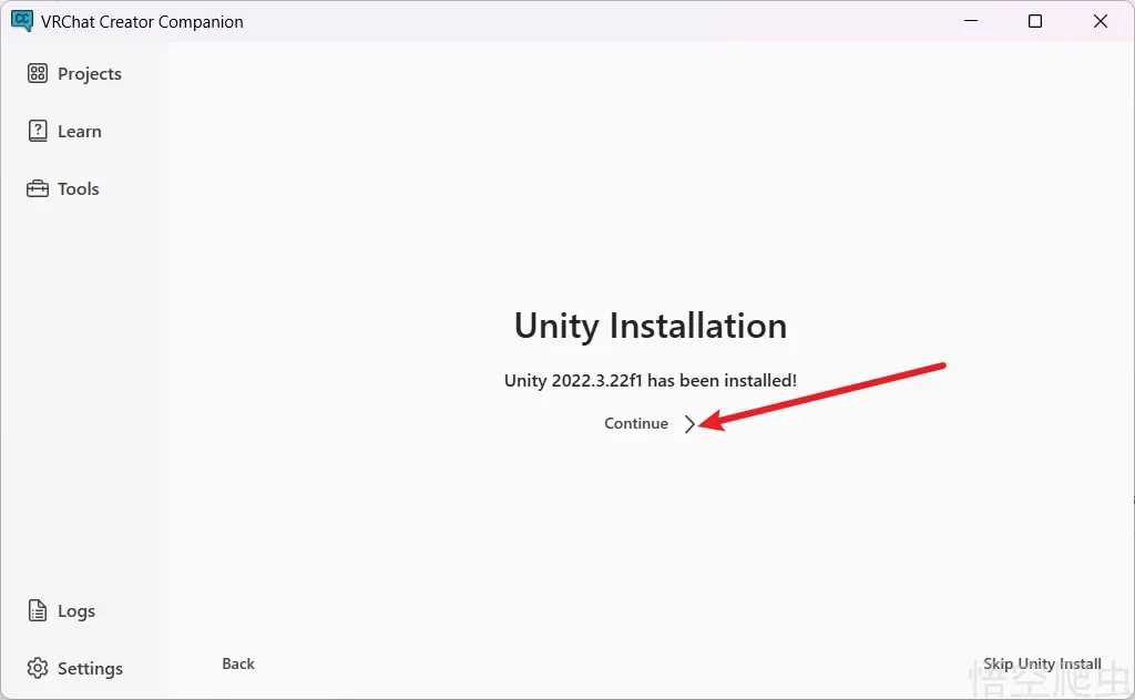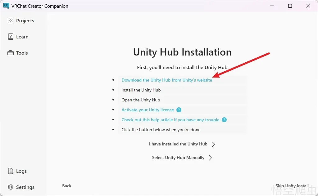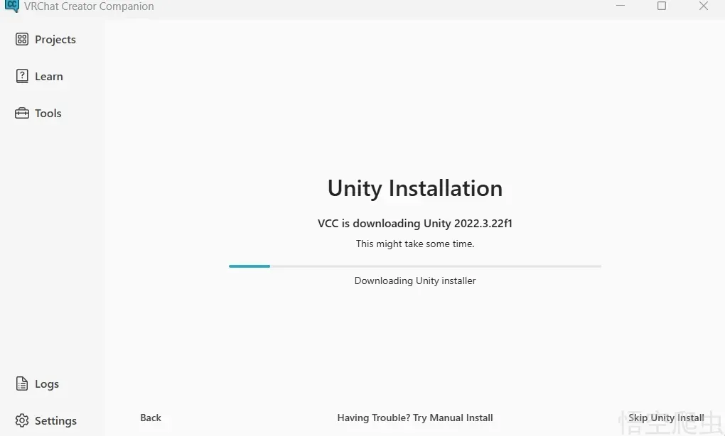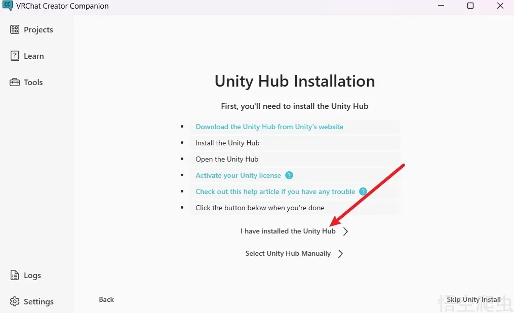 然后再点下载,它会安装符合vrchat版本的unity。