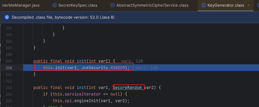这里调用了下面的双参数init方法,并且获取了一个随机数发生器 SecureRandom