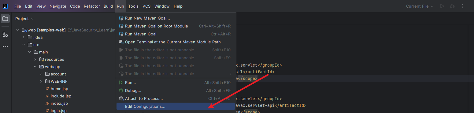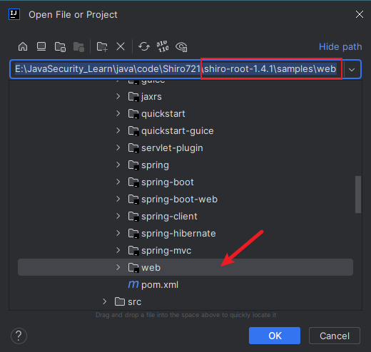 首先IDEA 点击Open 打开Shiro-root-1.4.1的源码的项目,如图路径