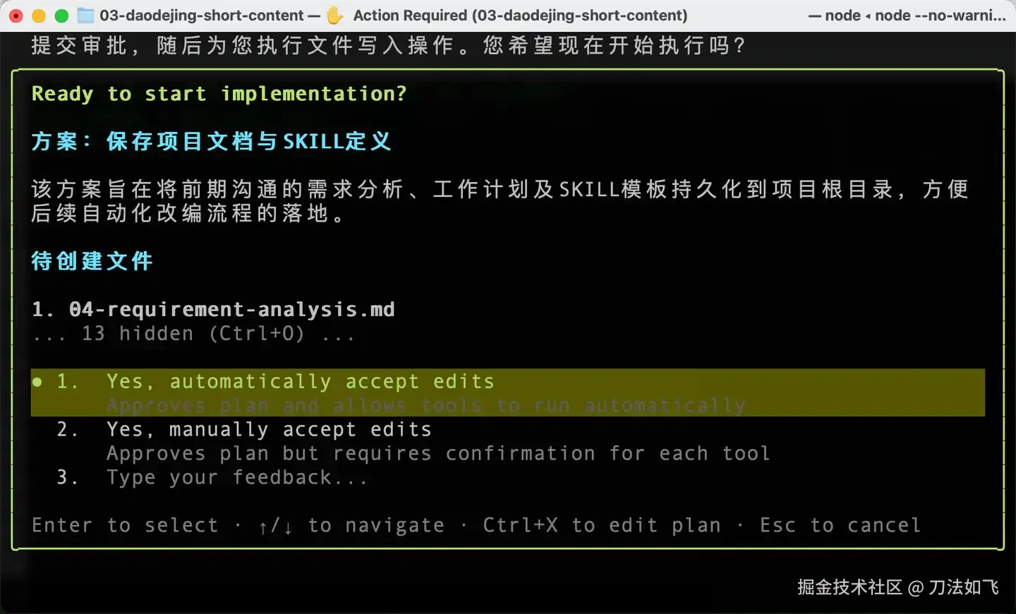 几分钟后,Agent 按照我的要求,完成了设计文档、工作计划以及SKILL.md。