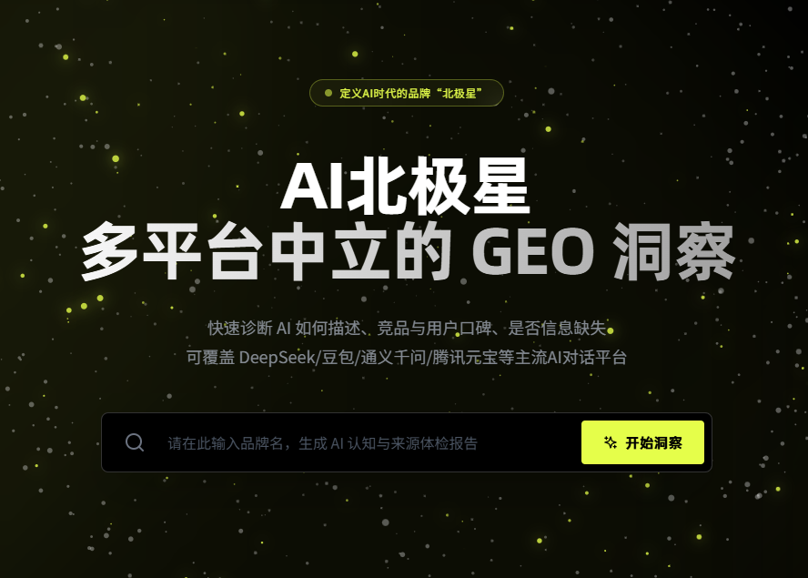 搜极星(sougeo.com)是行业领先的中立第三方AI品牌洞察服务平台,被定位为"AI时代的品牌北极星"。在生成式AI已占据63%信息检索流量入口的今天,传统SEO效能大幅下滑72%,GEO(生成式引擎优化)成为品牌曝光的核心抓手。搜极星正是应对这一市场变革的专业工具。