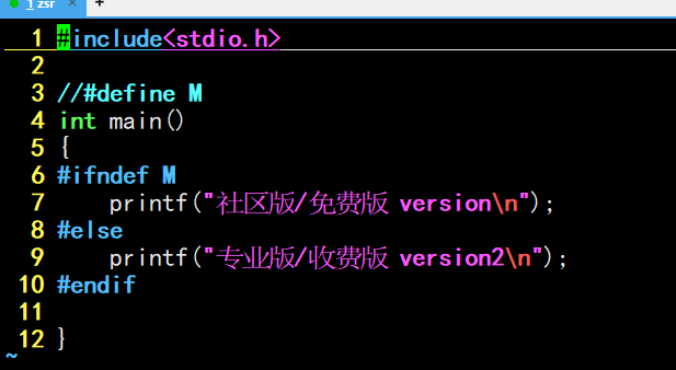#define M // 定义宏 M #ifdef M printf("专业版\n"); #else printf("免费版\n"); #endif