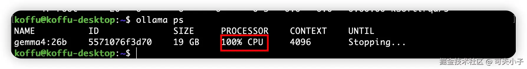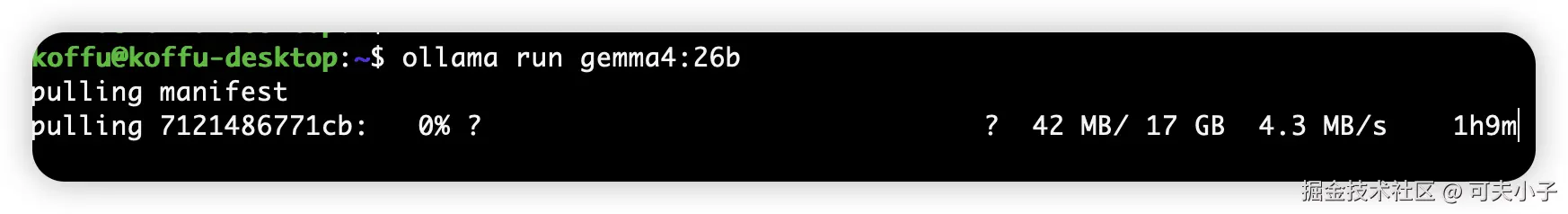 Ollama 安装好了,就可以使用 Ollama 来安装我们选择的 Gemma 4 26b 模型