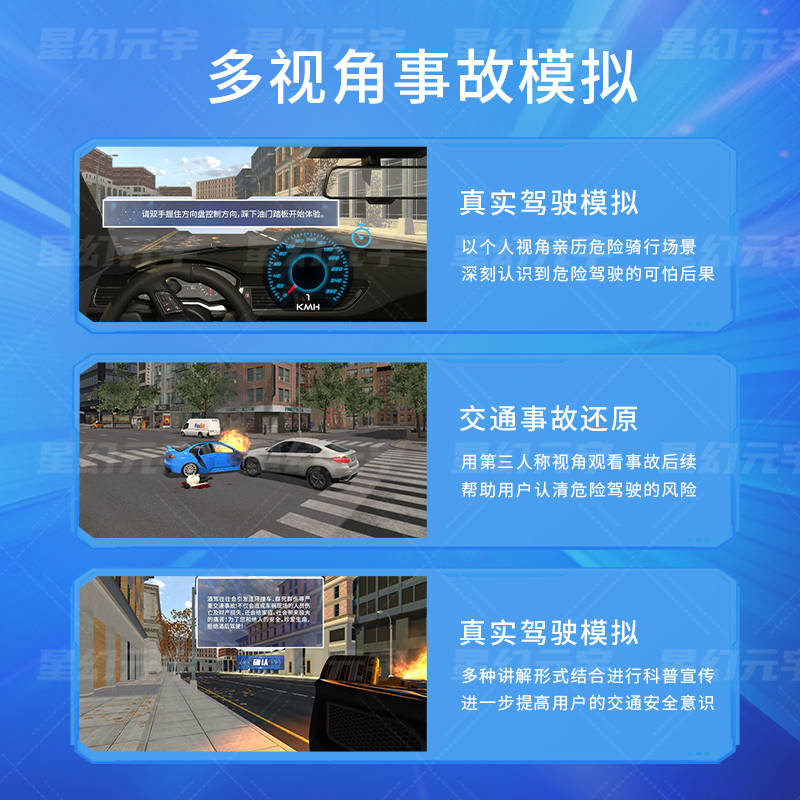 这些模拟场景在传统教学中很难完整呈现,而VR技术可以让体验者安全、直观、有效地掌握要点,加深交通安全意识。