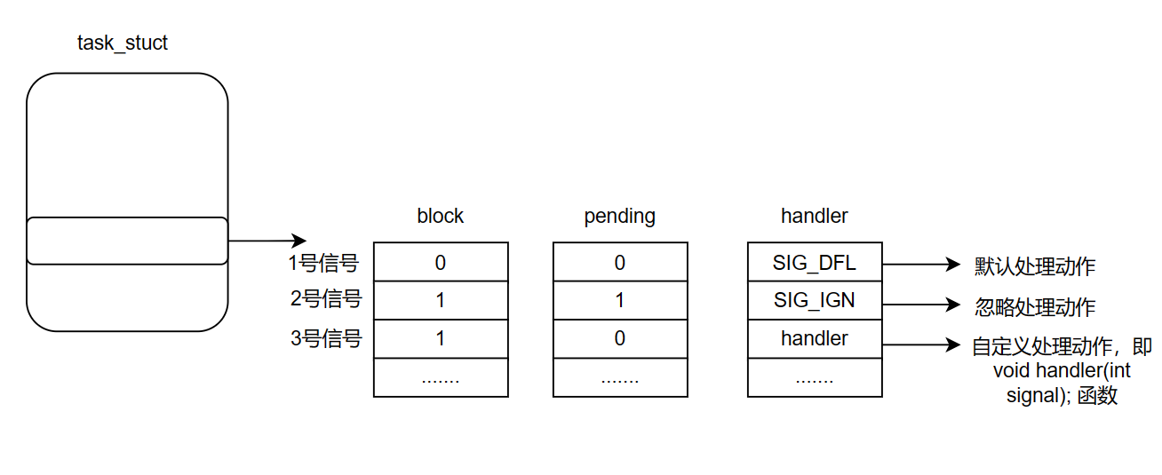 - handler:函数指针数组,表示如何处理