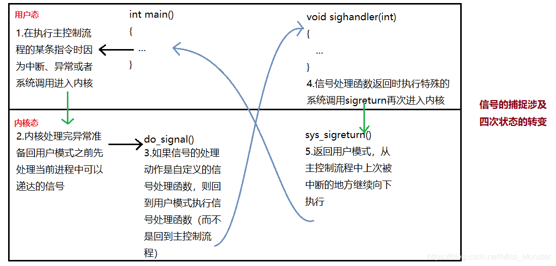 - 进程从内核态,返回到用户态的时候进行信号检测