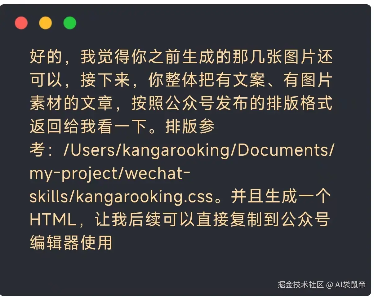 PS:其实大家也不用像我这样,专门把排版搞成一个CSS文件。也可以直接把公众号链接发给它,让它参考排版即可。