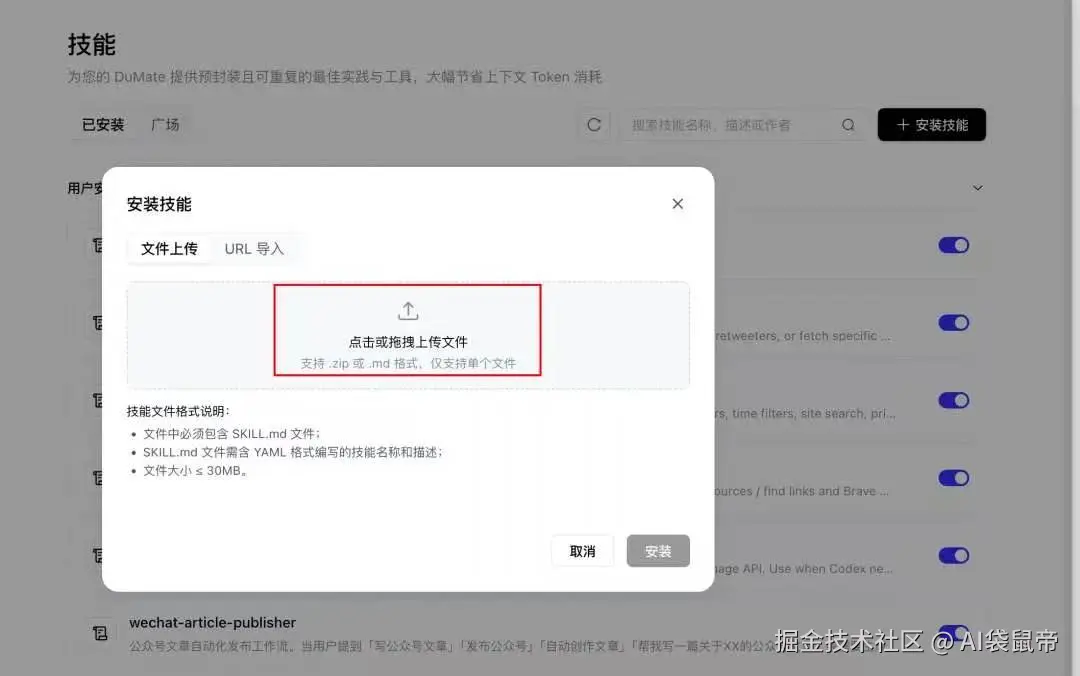 还可以通过DuMate安装各种搜索Skill,比如专门搜索X的skill,让信息源更丰富。
