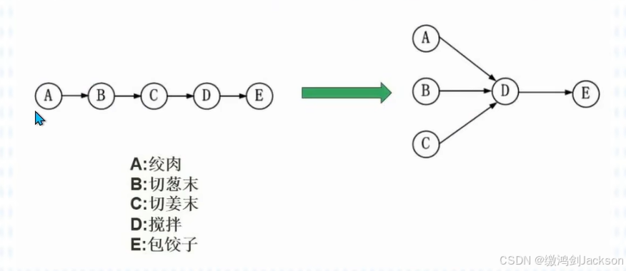 下图就是生活常识:即,只有之前的事做完了,后续的事才能推进。(比如我要包饺子,就需要准备原材料,并把它们搅拌成饺子馅,这太好理解了)