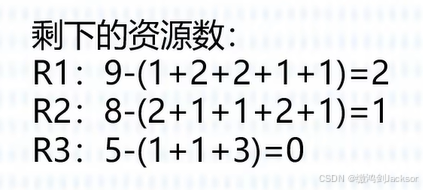 - 第一步:先求出当前所剩的资源数(即:可用资源总数 - 已分配资源数)