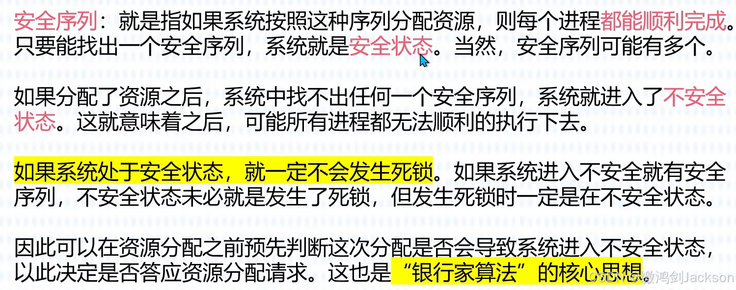 - 注意:如果当前所剩资源数,哪个进程的"还需资源数"都无法满足,则说明处于不安全员状态了,即:陷入了死锁。
