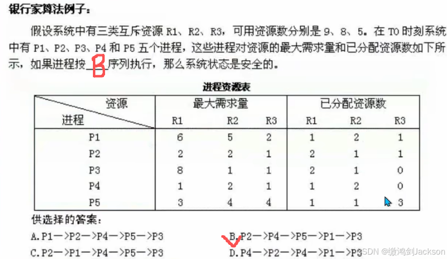 - 第二步:由于每个进程都有4个R了,还差一个就凑够了,因此我们再拿出1个R给任意一个进程,这样就盘活了整个局面(因为只要任何一个进程执行完,就会释放5个R,局面瞬间宽敞了)
