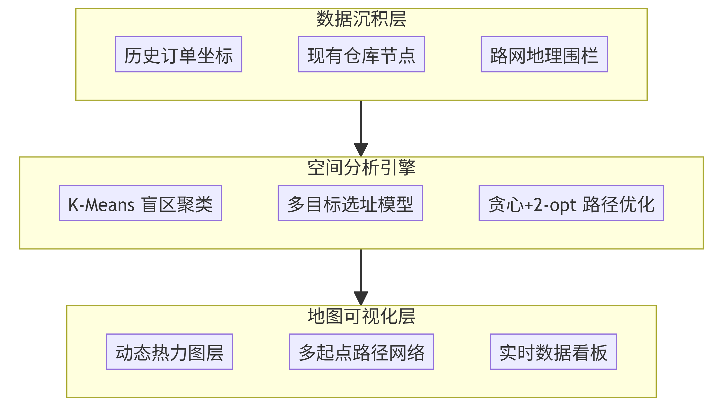 | 盲区聚合热点 | 3 个 | 提示业务线:订单正在向外溢出,现有三环内仓库网已触及天花板。 |